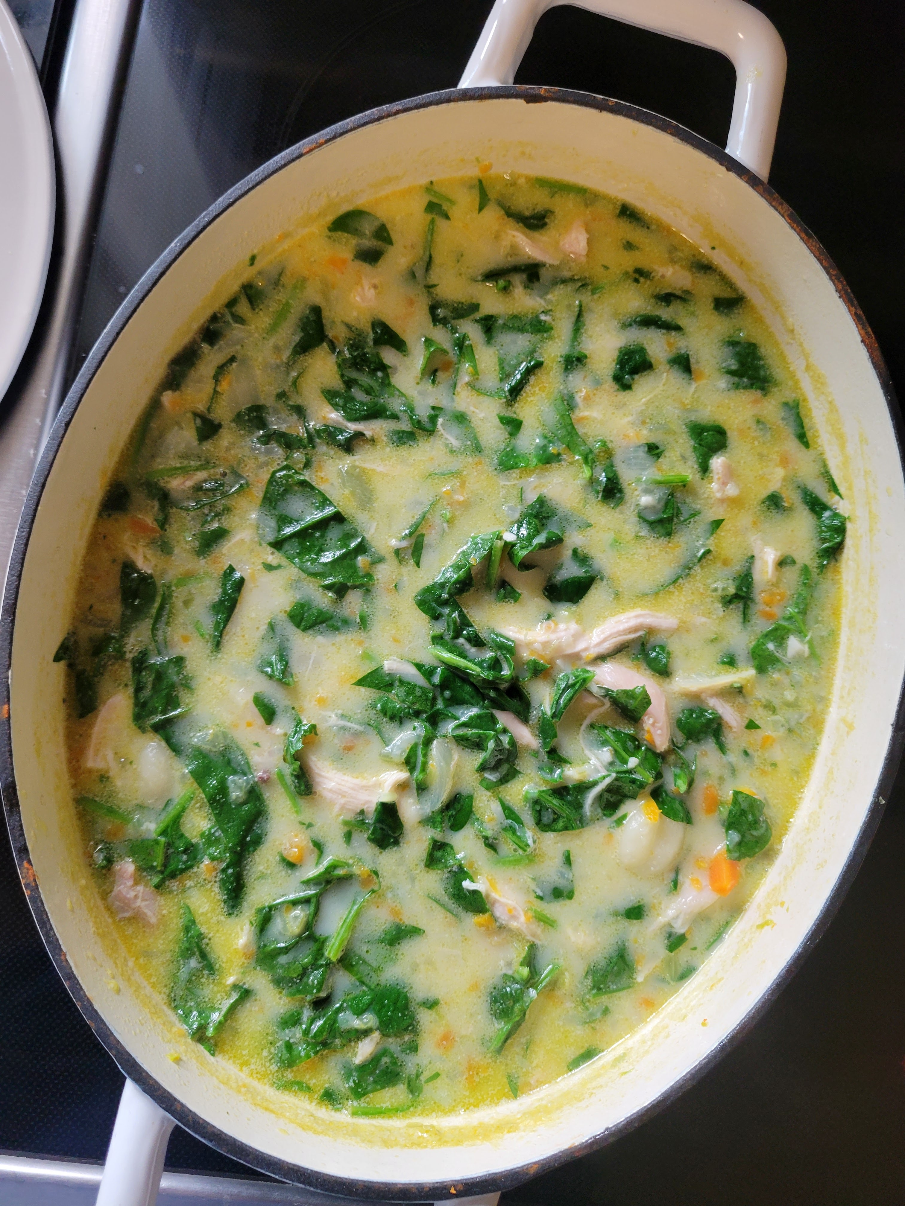 7. Lastly, I chopped the spinach and stirred it into the broth to wilt.