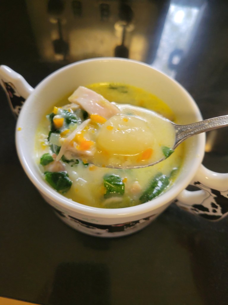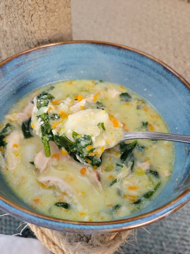 8. Grab a bowl and dish up! You can add any salt and pepper to taste but between the chicken and the cheese I find that the soup is already adequately seasoned!