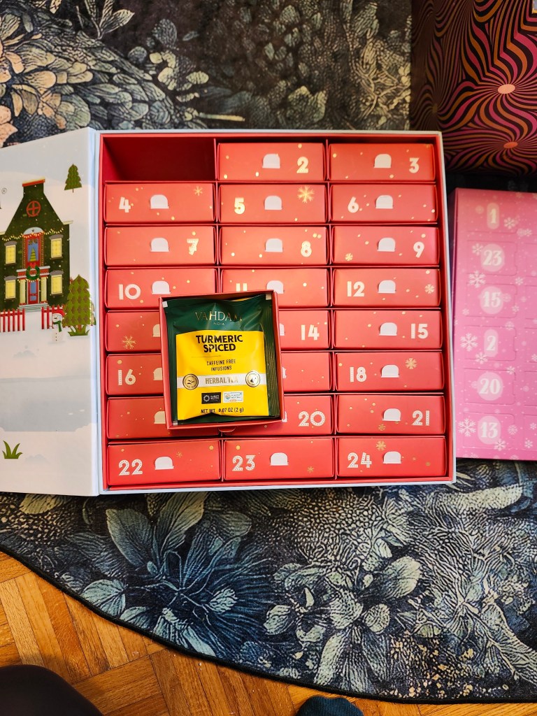 The coffee one is Nespresso since that is the coffee maker I have and I got a Vahdam tea calendar (I’ve never tried this brand before to be honest) and my husband got me a tea calendar from a local shop called The Boathouse Tea Room (they do afternoon tea and half their shop is an ice cream stand in the summer! It was a staple for us when we lived more in that neighborhood.)