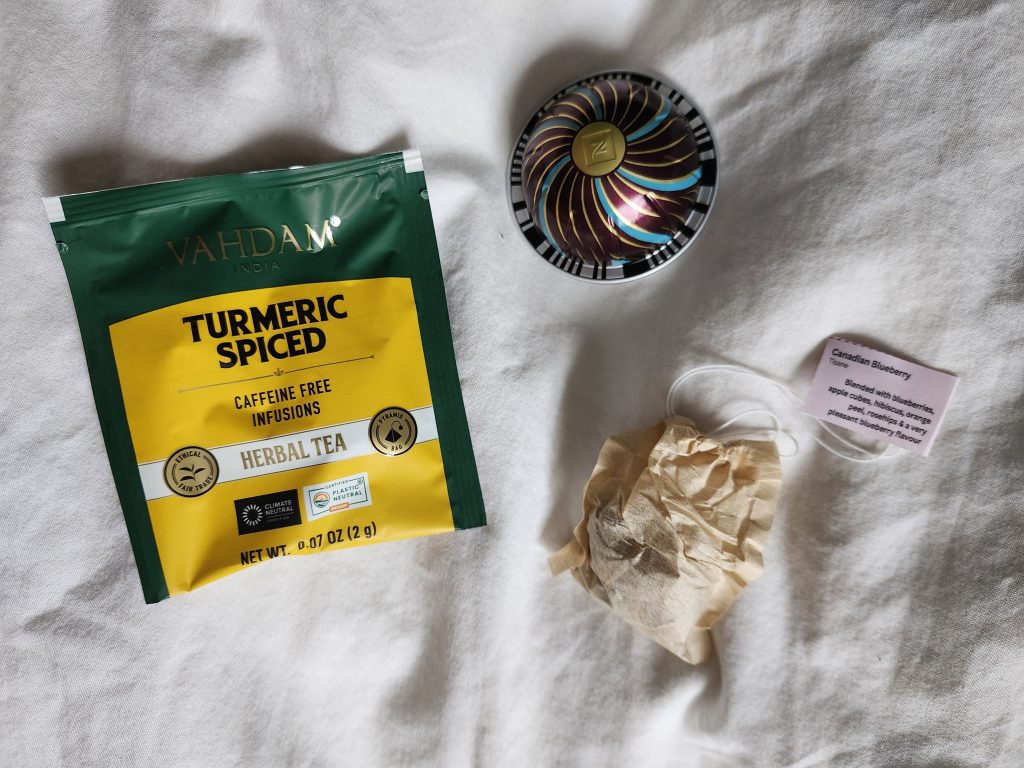 Todays contenders were a turmeric spiced herbal tea from Vahdam, a Canadian blueberry tea from The Boat House, and a double shot of espresso from Nespresso’s holiday line.