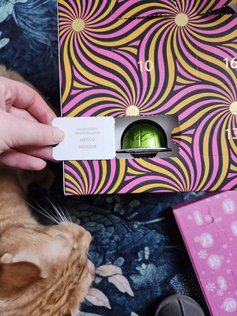 Day 8 brought a Chamomile Mint Citrus tea from Vahdam, Winter Dream green tea from The Boathouse, and Mexico master origins from Nespresso!